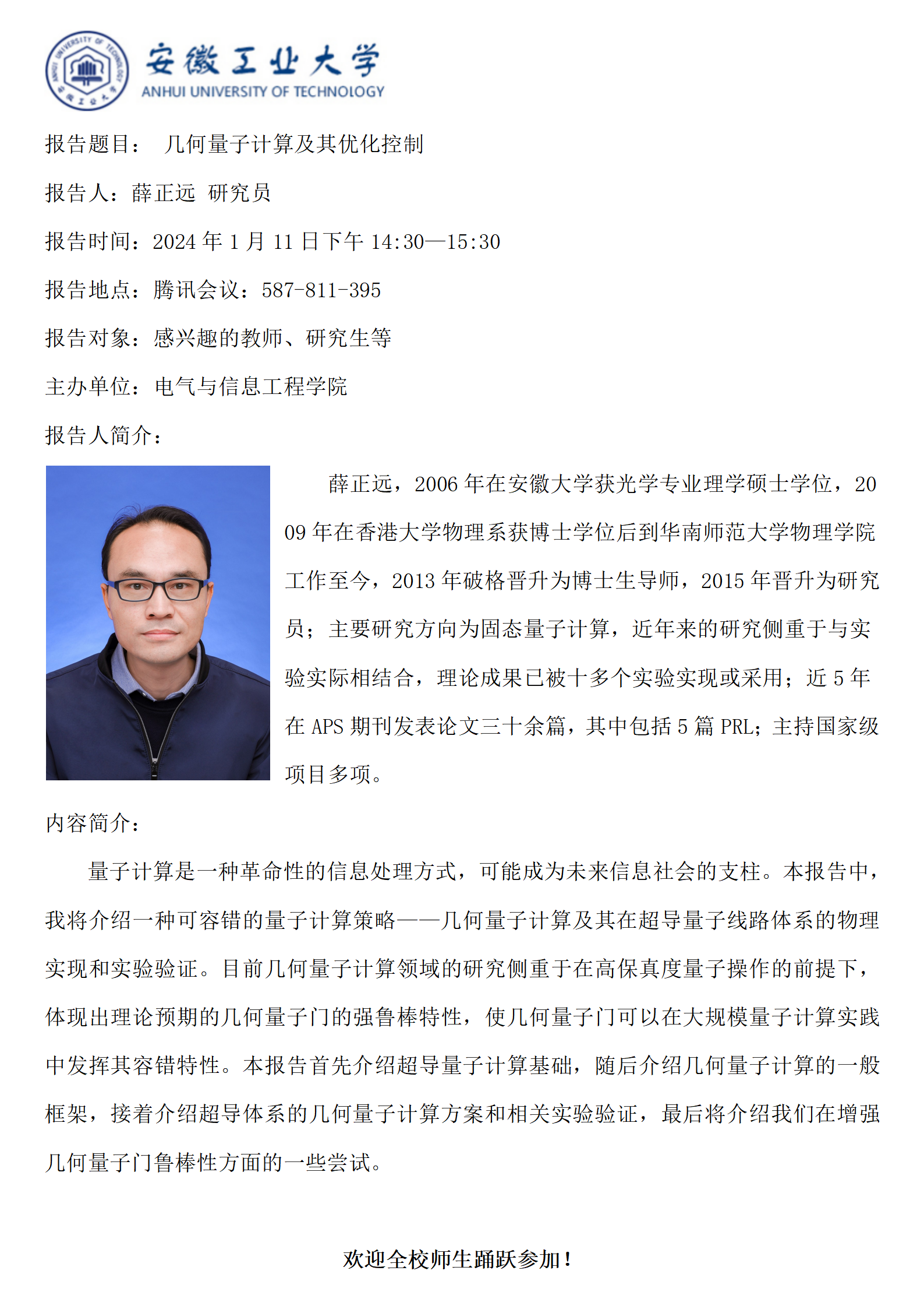 “谦之”学术讲坛之七十-几何量子计算及其优化控制